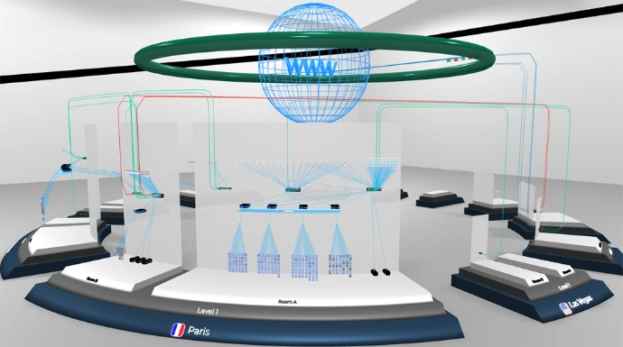 Visualisez l’ensemble de votre infrastructure informatique grâce à une interface de supervision unique en 3D. Naviguez entre les différents sites et les différentes salles que compte votre entreprise.