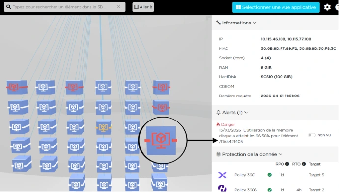 Une fois déployée, la sonde capture l’ensemble des éléments de votre système d’information. Vous recevez automatiquement des alertes en cas de problème.